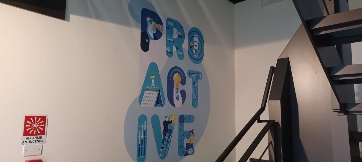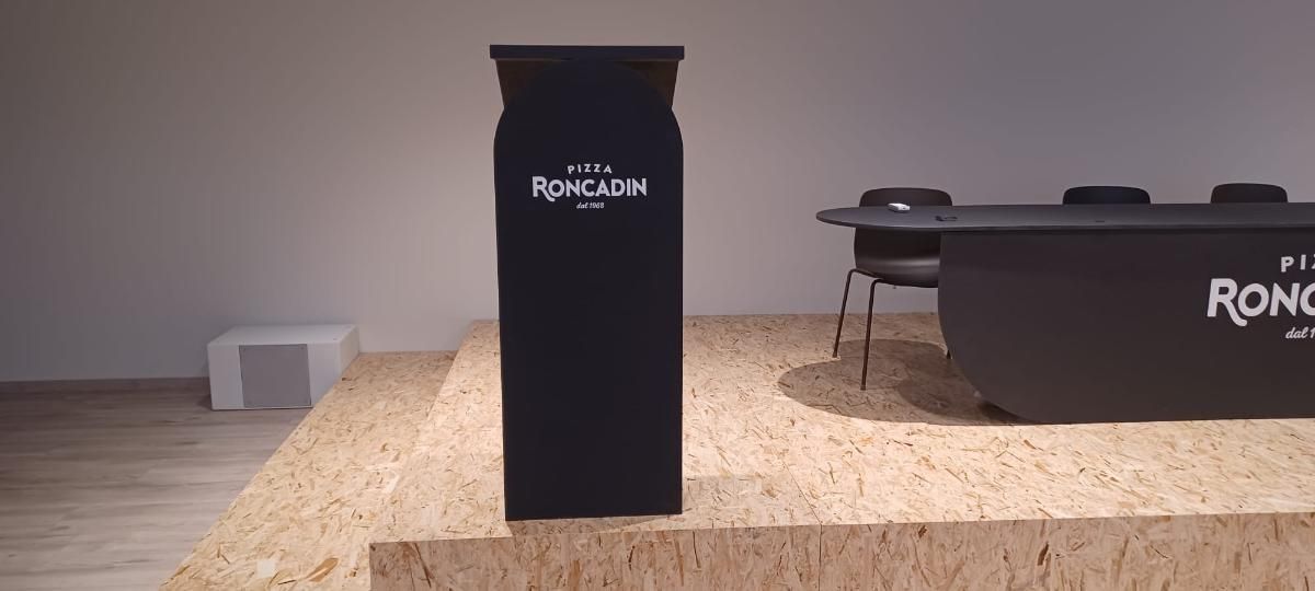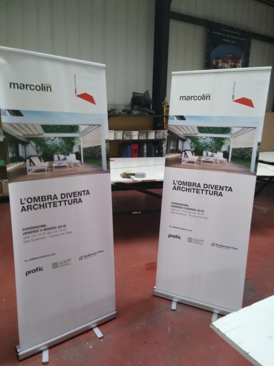 - Roll-up e fondali: sistemi espositivi compatti e autoportanti, con stampe intercambiabili, ideali per presentazioni, conferenze e aree demo.