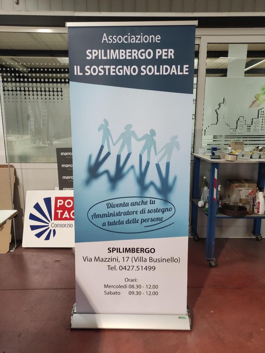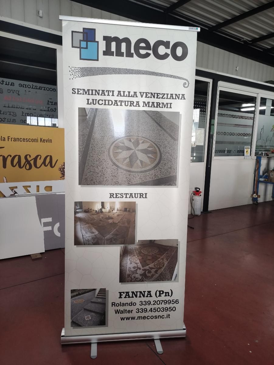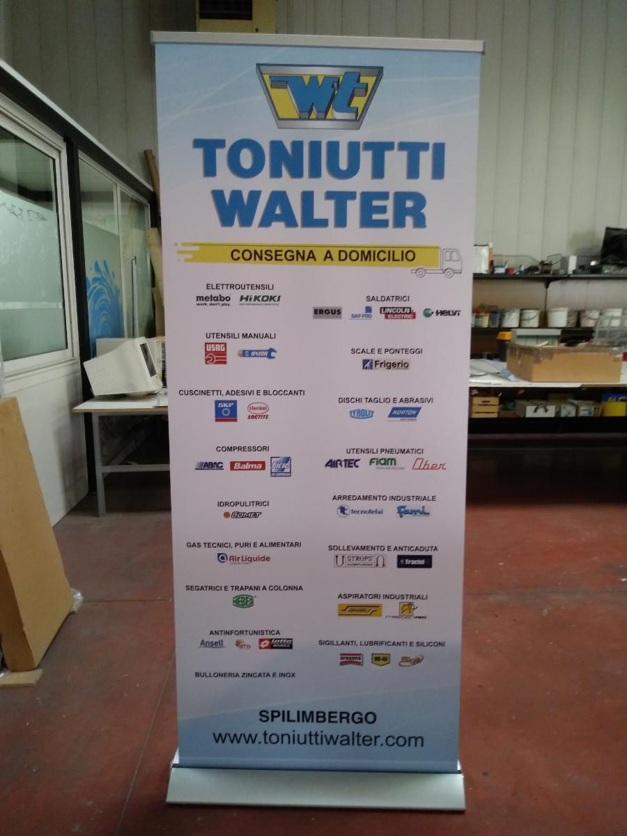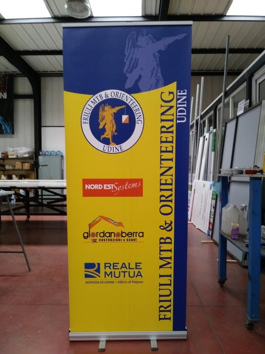 - Espositori roll-up: versioni slim e XL per dare visibilità a loghi, messaggi promozionali e lanci prodotto.
